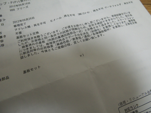 前回GPSの修理の時と同様基板一式交換になりましたが、案の序心配していた通りリビルト品の基板を使用したと書かれています(汗